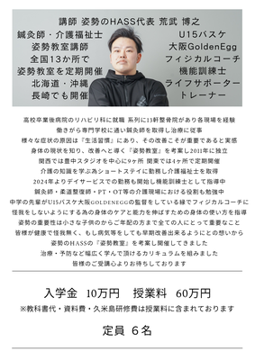 受講料 『姿勢アドバイザー』 13000円 姿勢教室を含む4時間の講習