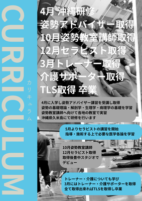 姿勢の基礎を学び「姿勢教室講師」を取得すると共に、人々を癒やす施術を学び「セラピスト」になる